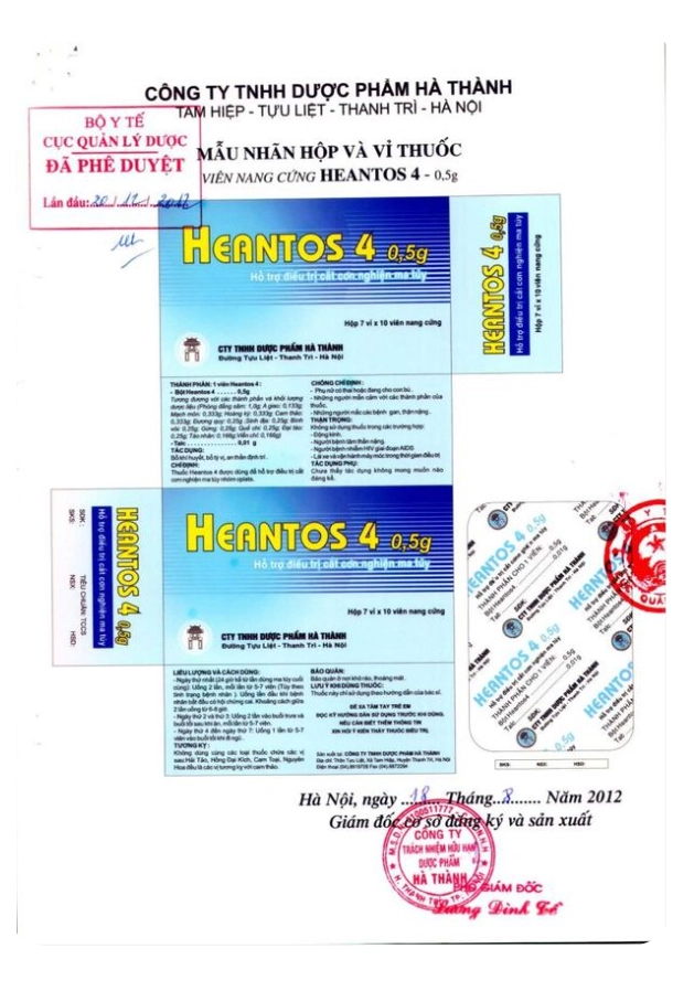 Thuốc Cai Nghiện Ma Túy Heantos 4 Chính Thức Được Phê Duyệt Mẫu Bao Bì Và Hướng Dẫn Sử Dụng